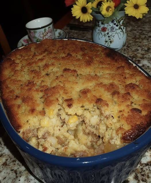 Southern Cornbread Casserole with Sausage and Corn is a warm, comforting, and deeply satisfying dish that brings together simple pantry ingredients and transforms them into a hearty meal. This casserole is rich, golden, and perfectly textured, combining a flavorful sausage filling with a buttery cornbread topping. It is ideal for family dinners, holiday gatherings, or any time you want a complete dish that everyone will enjoy without the need for complicated preparation.