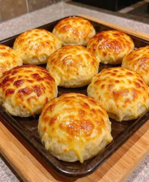 When they come out of the oven, brush them with melted butter for a glossy finish and a richer taste. The delicious aroma of warm bread and cheese will instantly fill your kitchen. Allow the buns to cool slightly before serving so that the cheese inside sets just enough without losing its melt.