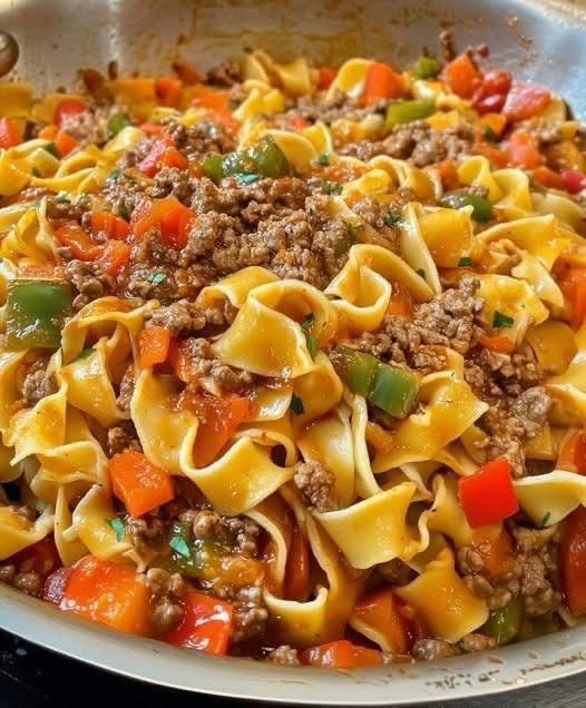 With tender egg noodles, savory ground beef, sweet peppers, onions, tomatoes, and just the right balance of seasoning, every bite is rich, flavorful, and incredibly satisfying.