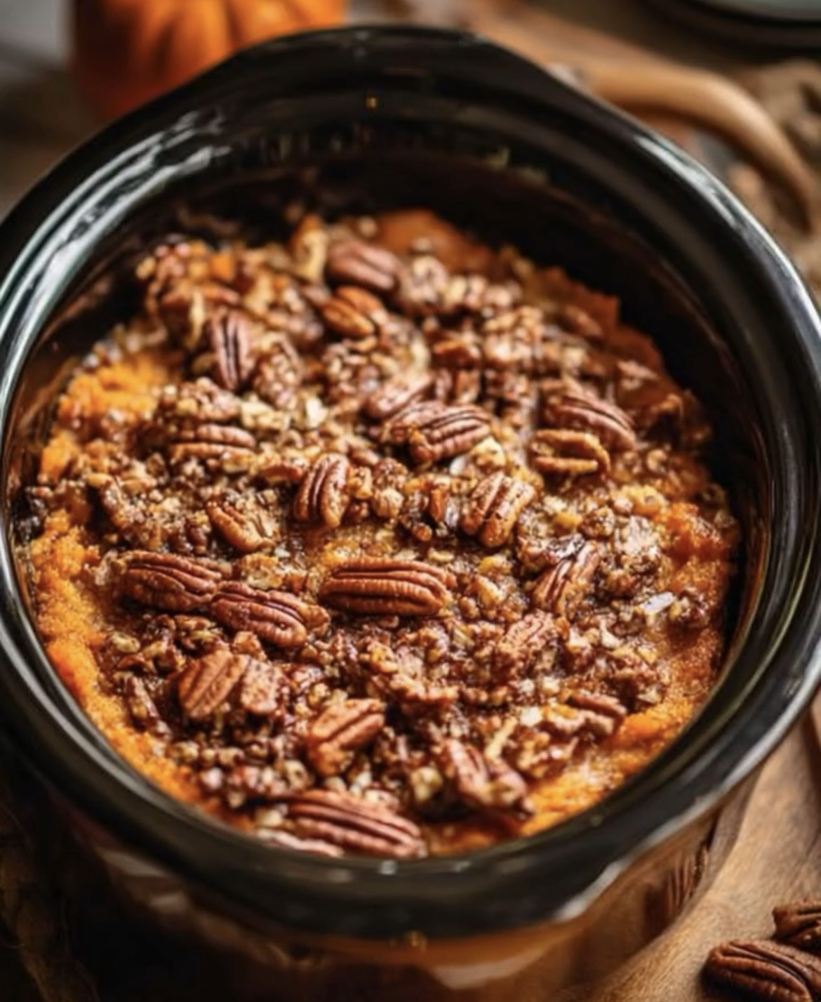 Using a slow cooker gives sweet potatoes time to soften gently and develop a naturally deeper flavor. As they cook, the sugars caramelize slightly, enhancing richness without extra effort. The topping—made with pecans, brown sugar, and butter—adds a crunchy contrast that keeps every bite satisfying.