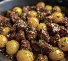 For a heartier presentation, consider serving the beef and potatoes over rice or mashed potatoes. The sauce drips into the base and makes the entire plate comforting and flavorful. If you enjoy a touch of creaminess, a spoonful of sour cream on top gives a nice finish without overpowering the garlic butter.