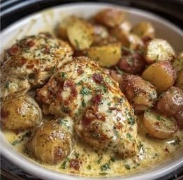 This dish is built around simple, everyday ingredients that become something special when cooked low and slow. The chicken becomes incredibly tender, the potatoes soften perfectly, and the sauce turns rich and smooth thanks to the combination of heavy cream, Parmesan, butter, and garlic. Ranch seasoning adds a delicious savory note while paprika brings warmth and color. The result is a creamy, comforting meal that feels both rustic and indulgent at the same time.