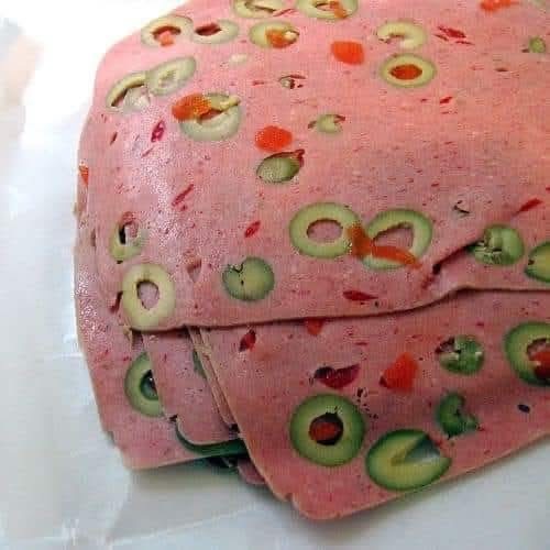 This recipe creates a firm, sliceable deli-style loaf with a mild savory flavor and that signature olive-and-pimento look. It’s cooked gently so it stays juicy, then chilled until it slices cleanly. Serve it thin on white bread with mustard, cube it for appetizers, or roll it up with cheese for quick lunches.