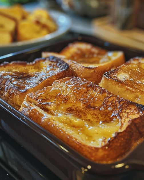 What makes this recipe truly magical is that most of the work happens the night before. While you sleep, thick slices of bread soak up a rich vanilla custard, allowing the flavors to deepen and the texture to become irresistibly soft. In the morning, all that’s left to do is bake and caramelize. The result is a golden, puffed casserole with a creamy interior and a crisp, brûléed top that tastes like it came from a bakery or café.