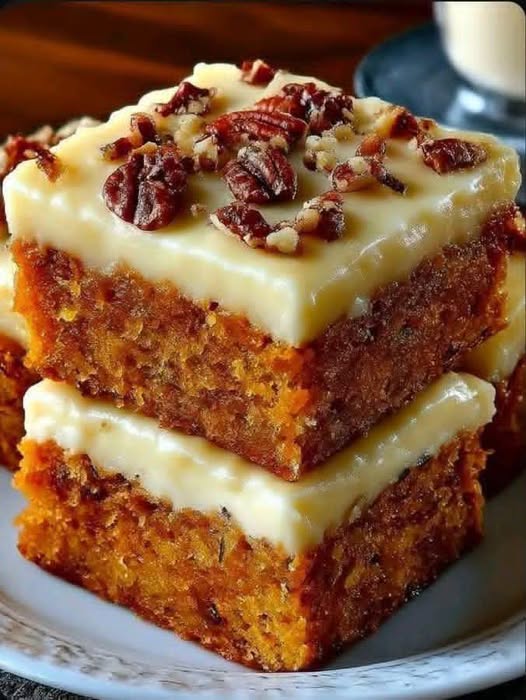Carrot Cake Bars with Cream Cheese Frosting and Pecans