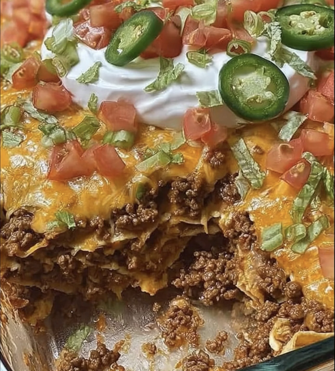Layered Taco Casserole proves that comfort food can be fast, flavorful, and easy enough for everyday cooking. With familiar taco flavors layered into a hearty bake, it transforms dinner into something special even on busy nights. Every bite delivers warmth, spice, softness, crunch, and gooey cheese—the best parts of tacos bundled into one glorious dish. Serve it fresh, top it boldly, and enjoy the kind of meal that keeps everyone coming back for seconds. 🌮🍅🧀