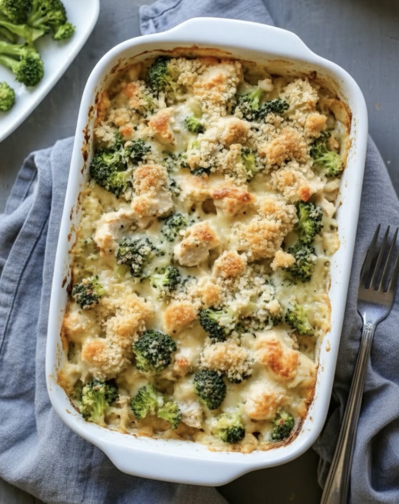 Creamy Chicken and Broccoli Casserole is a complete meal on its own, but it pairs well with simple sides like a green salad, steamed vegetables, or crusty bread. For added freshness, serve with a squeeze of lemon or a sprinkle of fresh herbs just before serving.