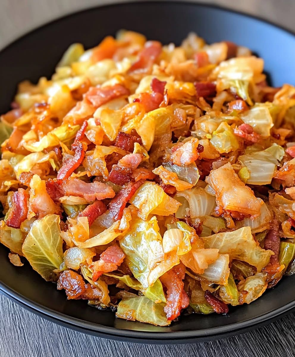 The beauty of this dish lies in how bacon drippings replace butter or oil, infusing every layer of cabbage with smoky depth. As the cabbage softens, it absorbs the rendered fat along with caramelized onions, creating rich flavor while still keeping a pleasant bite. This recipe requires no complicated steps, only time and heat to coax out the best in every ingredient. The result is a golden, tender, slightly crispy cabbage medley—perfect served alongside roasted meats, fried chicken, or even a slice of warm cornbread.