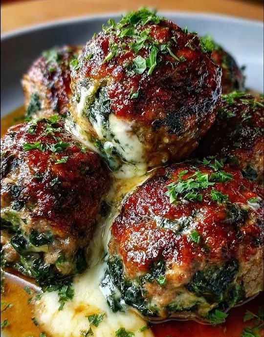 Spinach Garlic Meatballs Stuffed with Mozzarella are a perfect example of how simple ingredients can come together to create a dish that is both indulgent and wholesome. Their combination of juicy beef, flavorful spinach, and melty mozzarella makes them irresistible. Whether served as a main course, appetizer, or party snack, they are sure to become a favorite in your recipe collection.