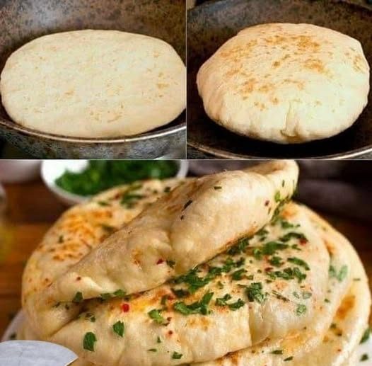 Heat a dry skillet over medium heat. Cook each flatbread for 2 to 3 minutes per side until puffed and lightly browned.