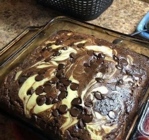 Drop spoonfuls of the cheesecake mixture over the brownie layer. Use a knife or skewer to gently swirl the two layers together.
