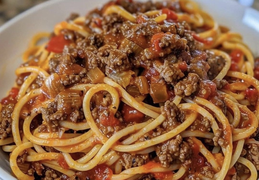 Made with ground beef, sweet onions, olive oil, and a slow-simmered tomato base, this pasta recipe is both rustic and flavorful. The sauce clings beautifully to the spaghetti, creating a balanced combination of juicy meat, soft vegetables, and perfectly cooked pasta. It’s the kind of recipe you’ll come back to again and again.