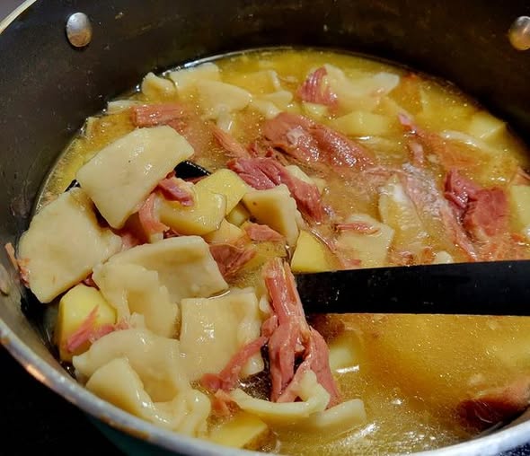 Slippery Pot Pie is a comforting reminder of simple home cooking. With tender chicken, savory broth, and soft handmade noodles, it delivers warmth and satisfaction in every bite.